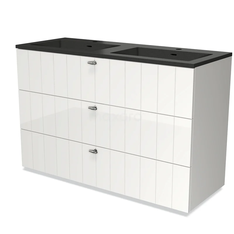 Modulo Bathroom furniture with sink | 120 cm High-gloss white Slat front Quartz 3 drawers