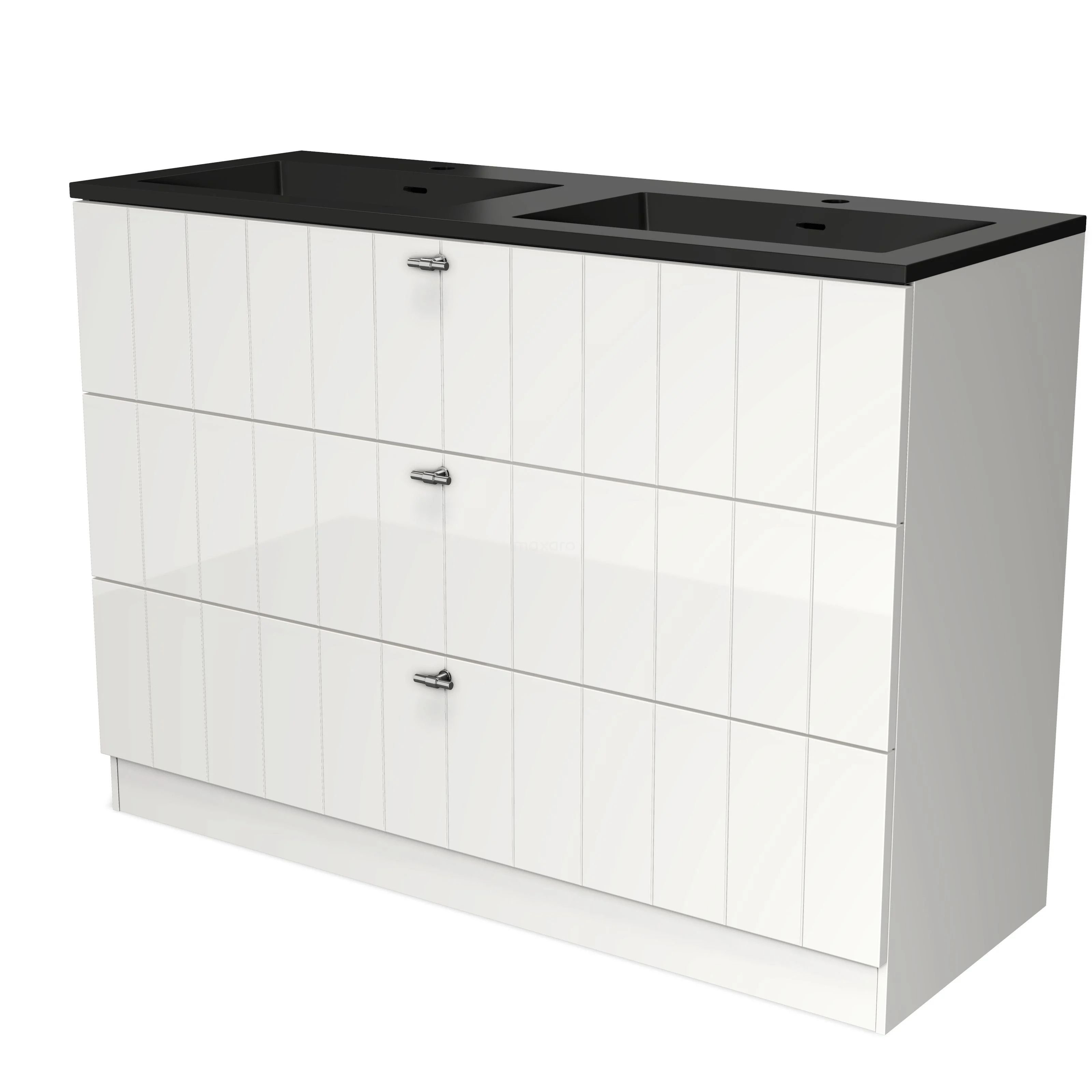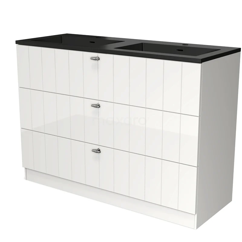Modulo Bathroom furniture with sink | 120 cm High-gloss white Slat front Quartz 3 standing drawers