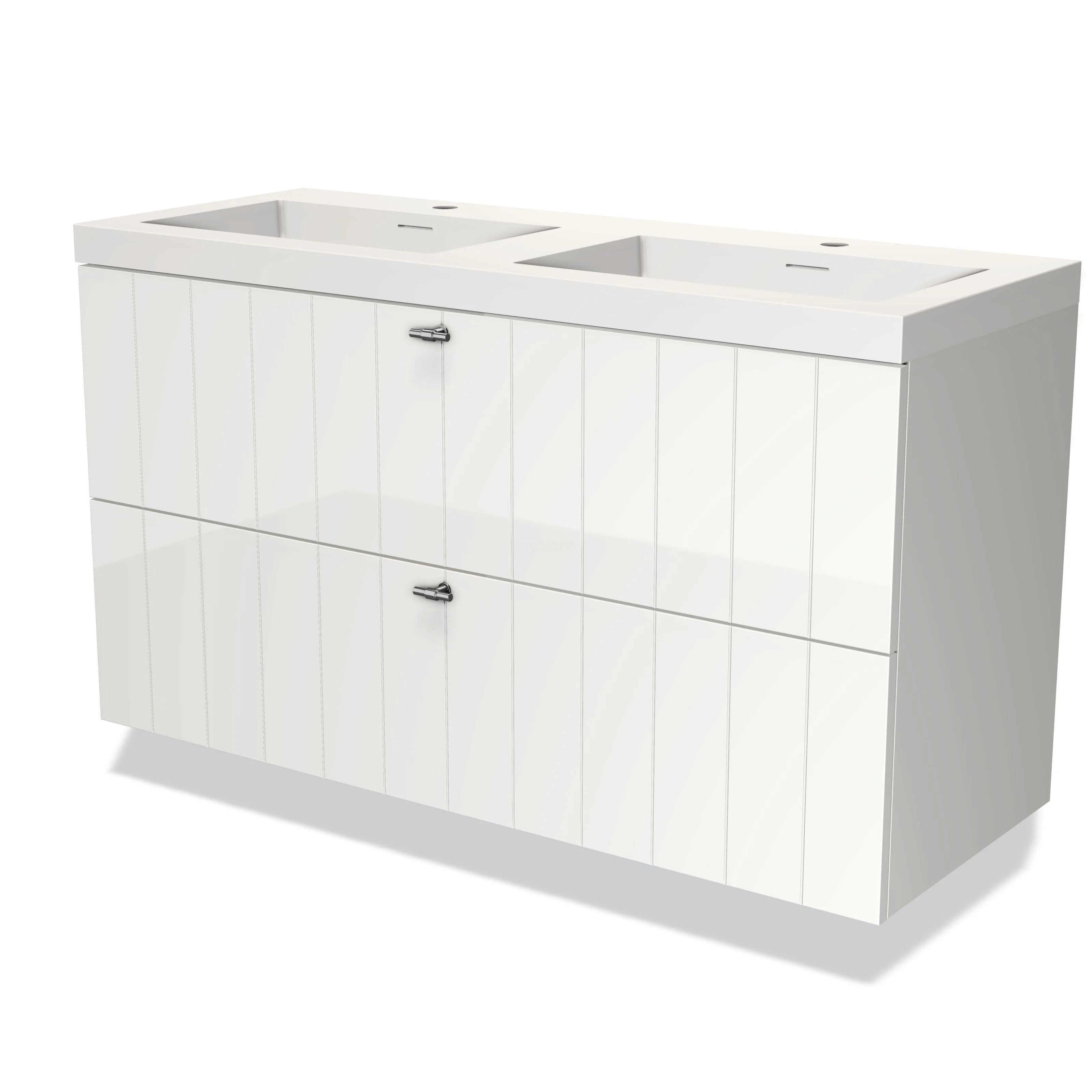 Modulo Bathroom furniture with sink | 120 cm High-gloss white Slat front Solid surface 2 Stacked drawers