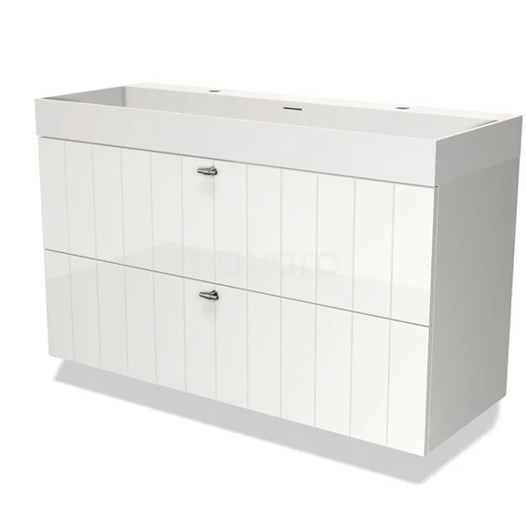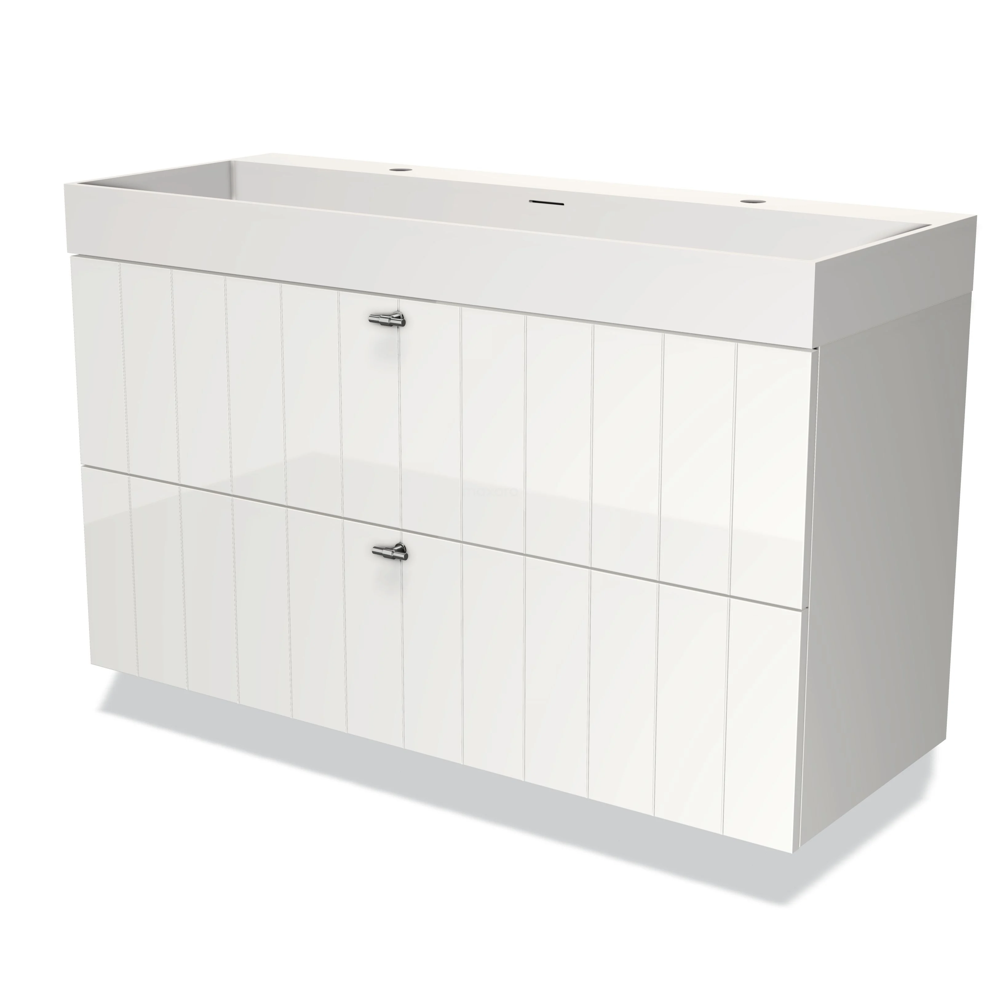 Modulo Bathroom furniture with sink | 120 cm High-gloss white Slat front Solid surface 2 Stacked drawers