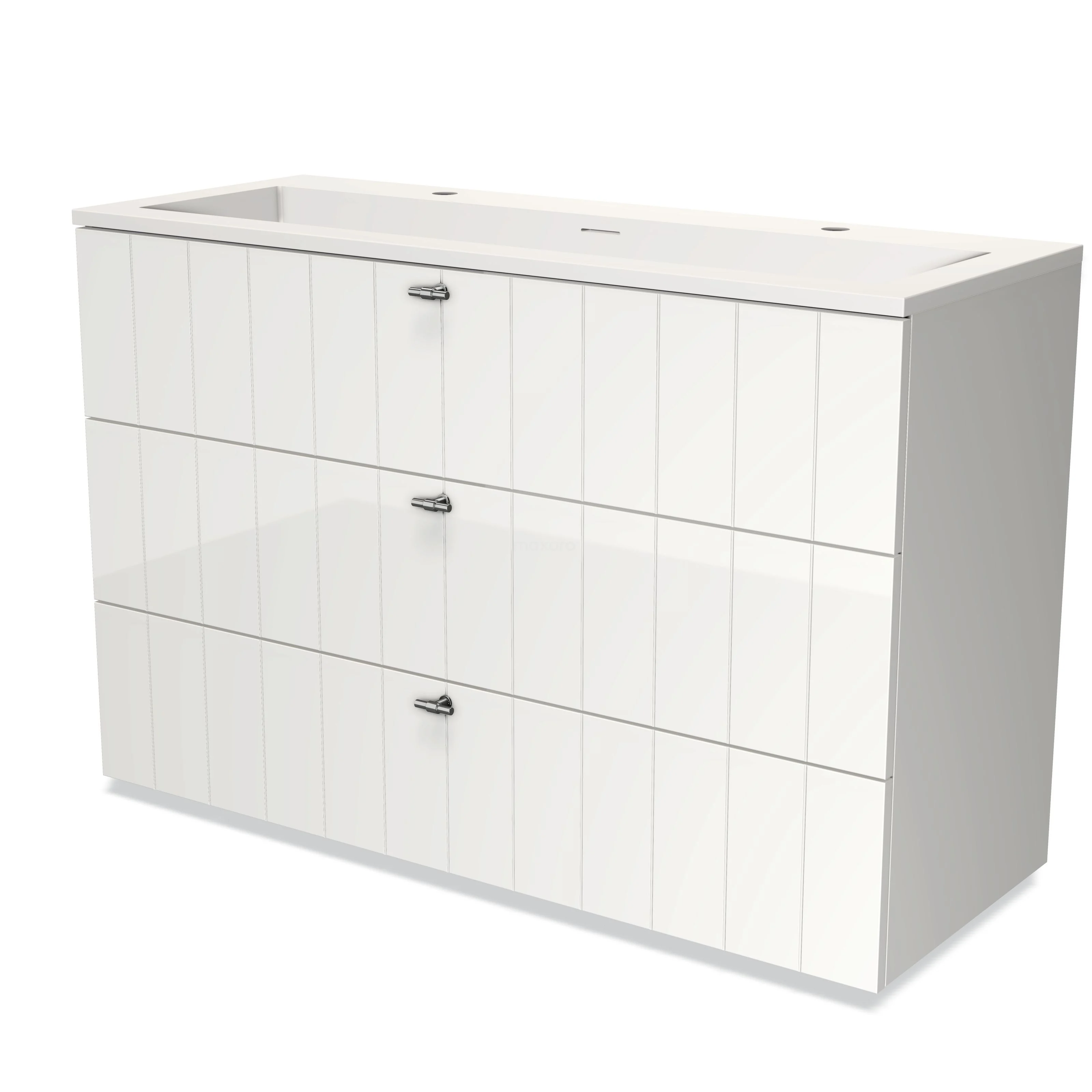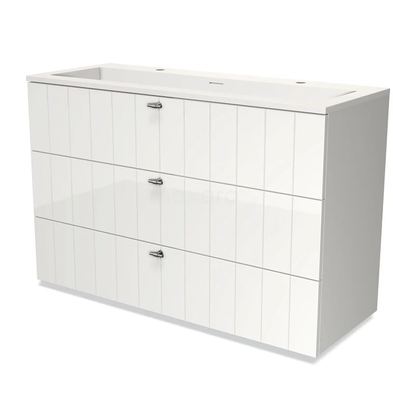 Modulo Bathroom furniture with sink | 120 cm High-gloss white Slat front Solid surface 3 drawers