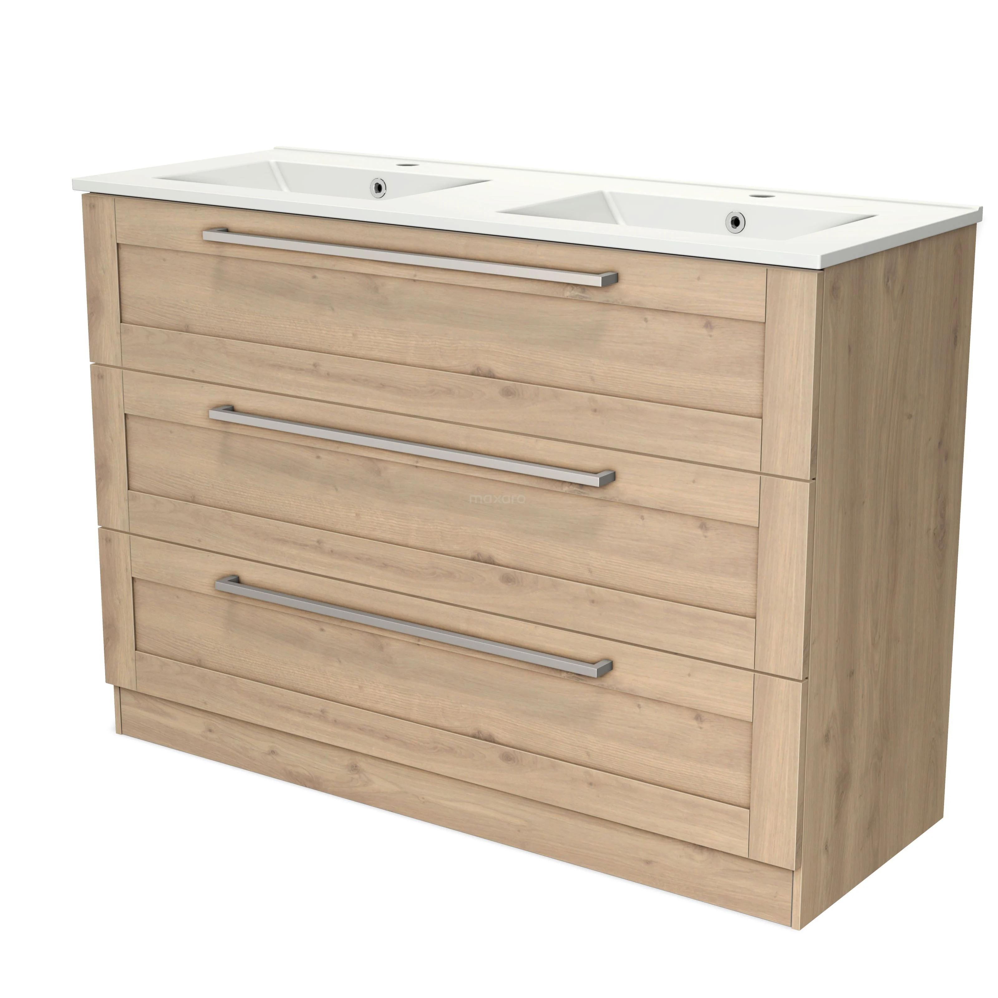 Modulo Bathroom furniture with sink | 120 cm Light brown oak Frame front Ceramic 3 standing drawers