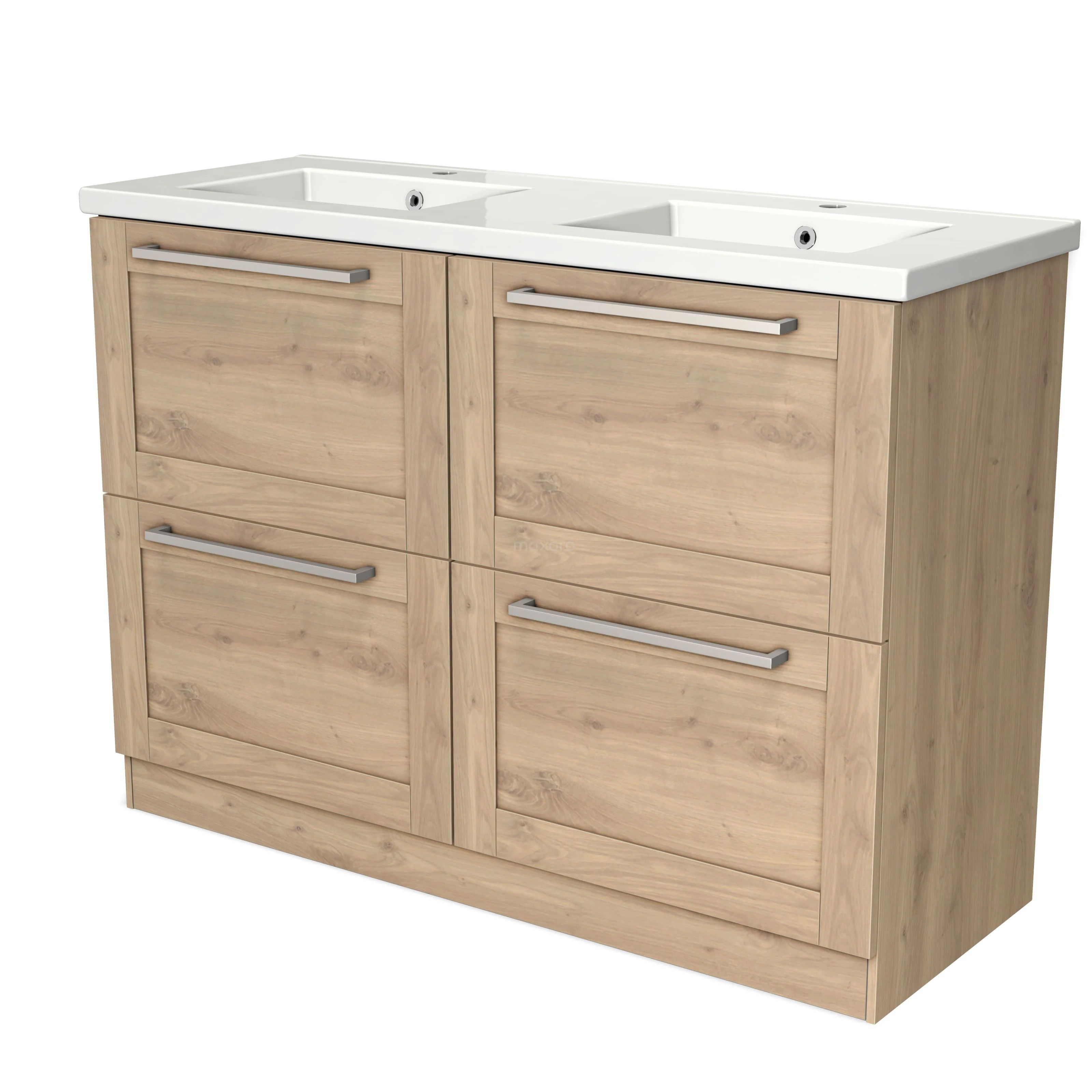 Modulo Bathroom furniture with sink | 120 cm Light brown oak Frame front Ceramic 4 standing high drawers