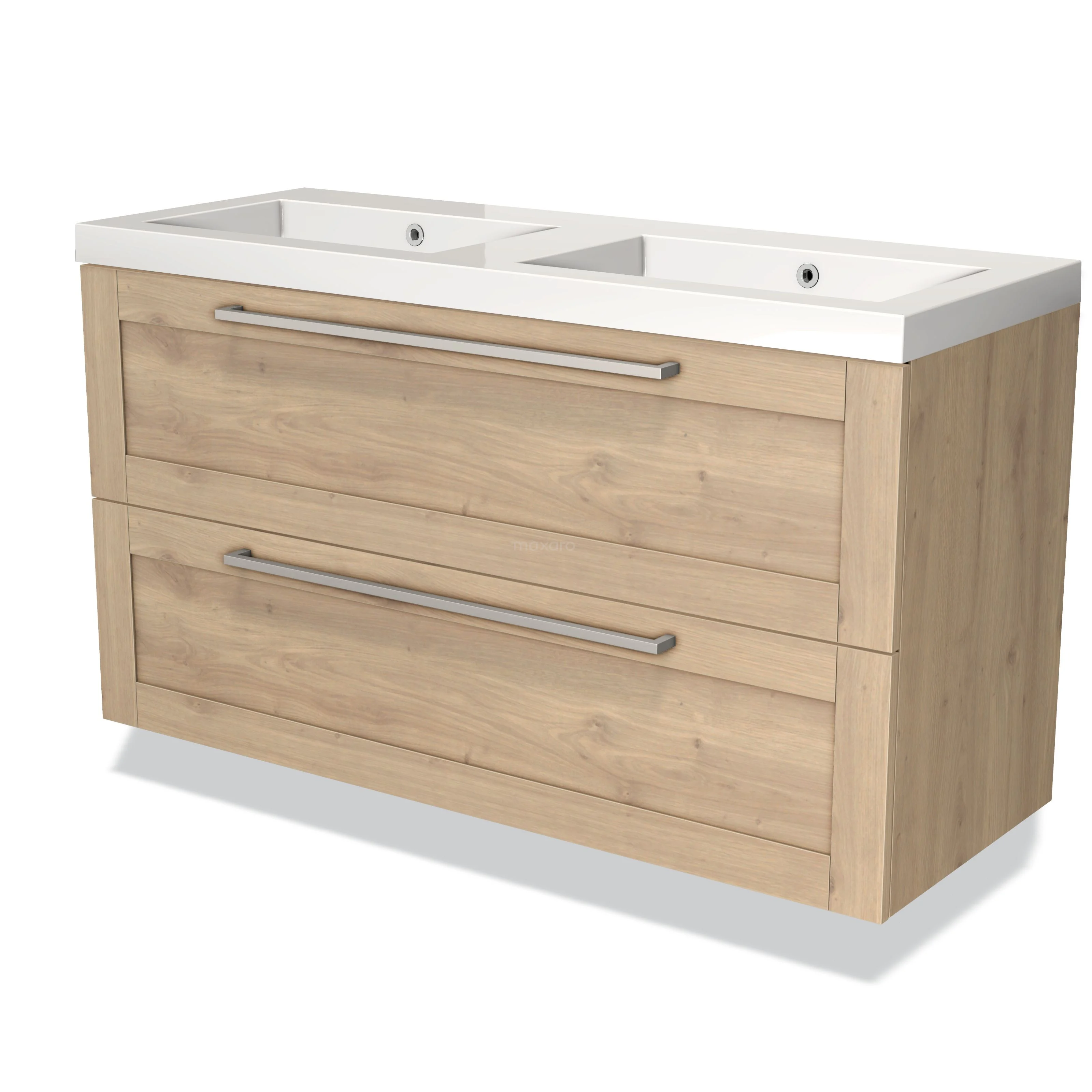 Modulo Bathroom furniture with sink | 120 cm Light brown oak Frame front Mineral marble 2 Stacked drawers