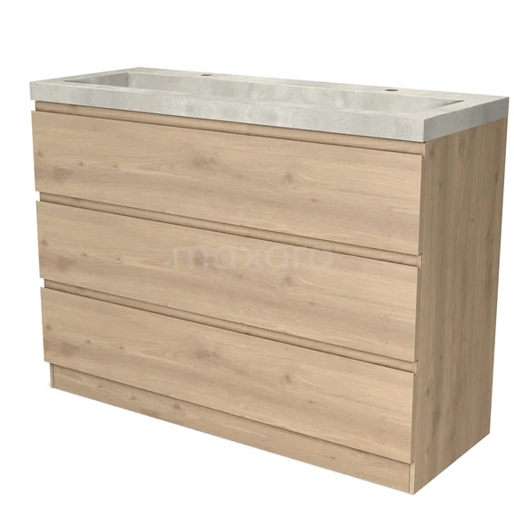 Modulo Bathroom furniture with sink | 120 cm Light brown oak Handle-less front Concrete 3 standing drawers