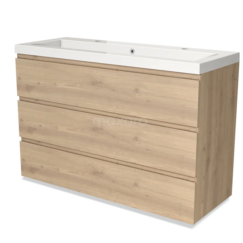 Modulo Bathroom furniture with sink | 120 cm Light brown oak Handle-less front Mineral marble 3 drawers