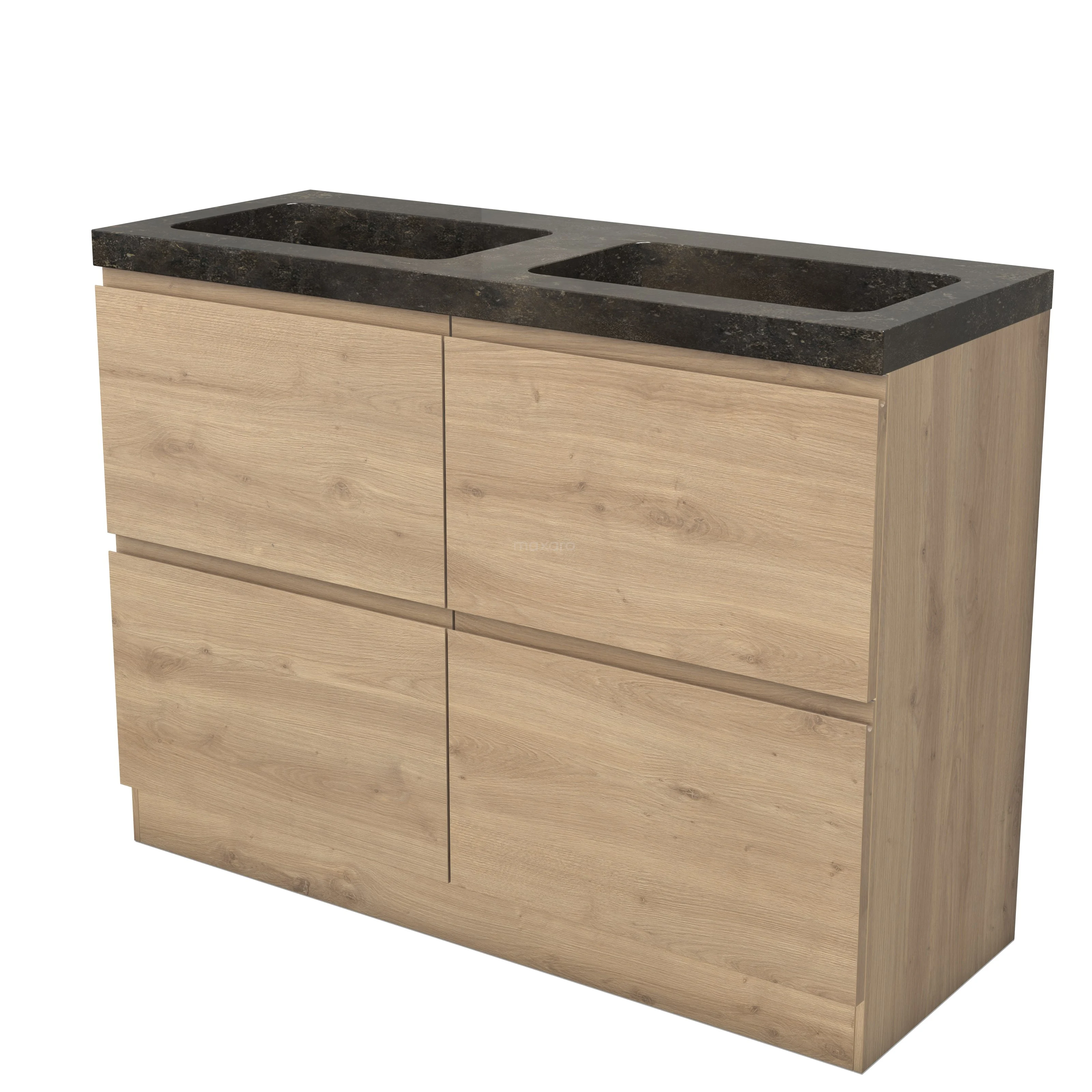 Modulo Bathroom furniture with sink | 120 cm Light brown oak Handle-less front Natural stone 4 standing high drawers