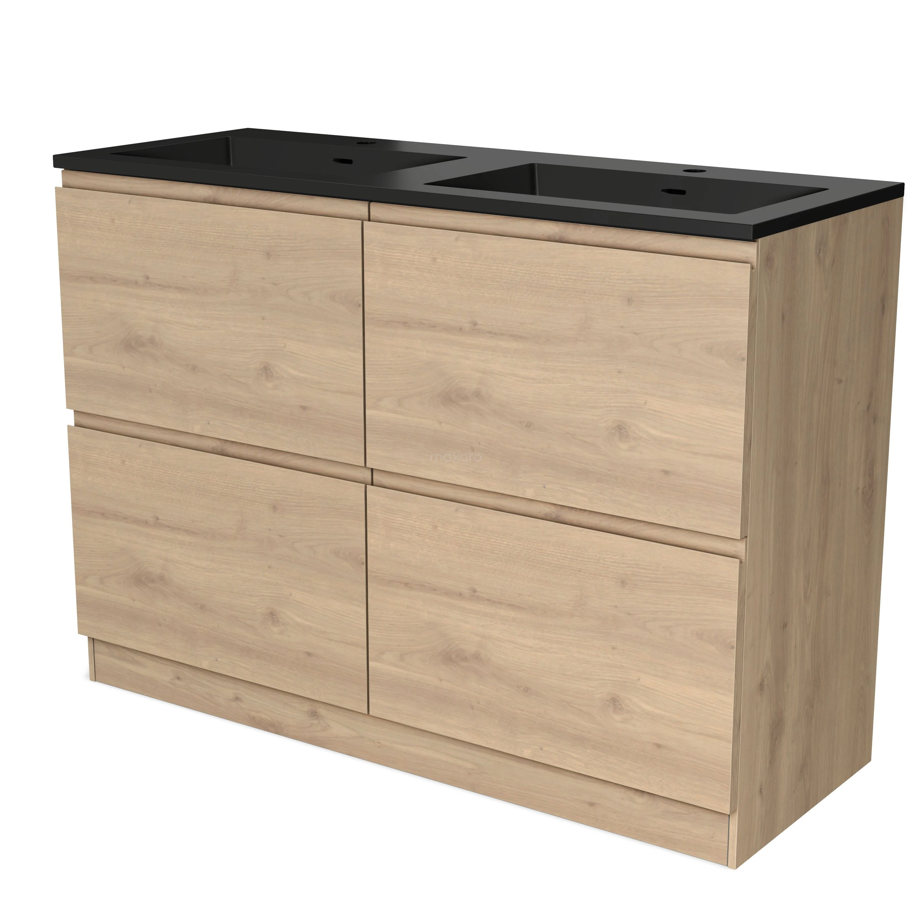 Modulo Bathroom furniture with sink | 120 cm Light brown oak Handle-less front Quartz 4 standing high drawers