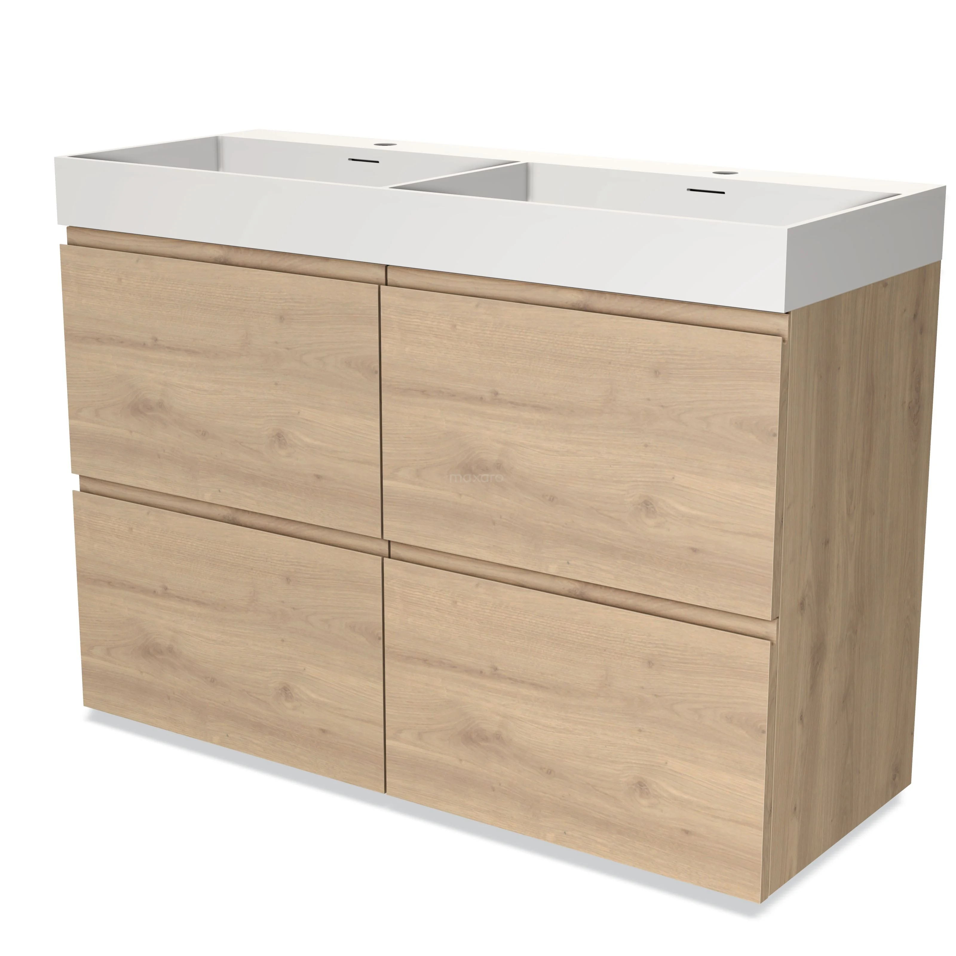 Modulo Bathroom furniture with sink | 120 cm Light brown oak Handle-less front Solid surface 4 high drawers