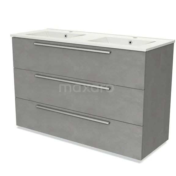 Modulo Bathroom furniture with sink | 120 cm Light grey concrete Flat front Ceramic 3 drawers