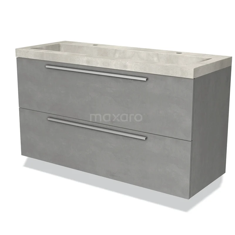 Modulo Bathroom furniture with sink | 120 cm Light grey concrete Flat front Concrete 2 Stacked drawers