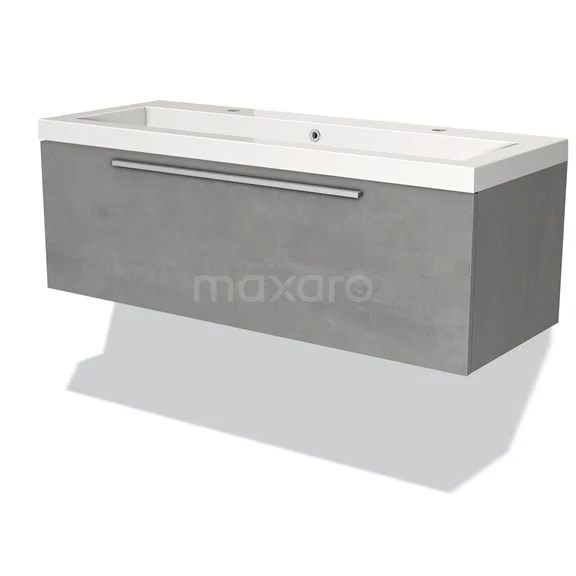 Modulo Bathroom furniture with sink | 120 cm Light grey concrete Flat front Mineral marble 1 drawer