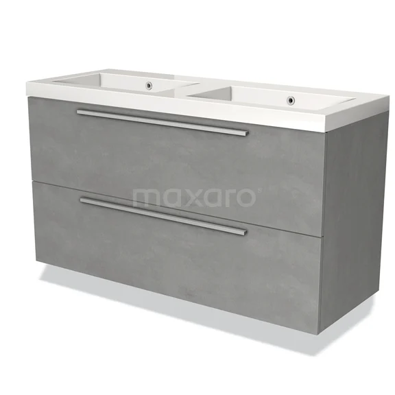 Modulo Bathroom furniture with sink | 120 cm Light grey concrete Flat front Mineral marble 2 Stacked drawers
