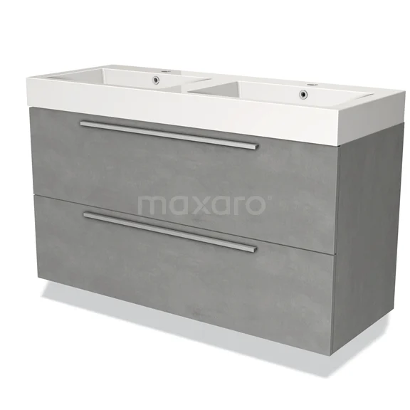 Modulo Bathroom furniture with sink | 120 cm Light grey concrete Flat front Mineral marble 2 Stacked drawers