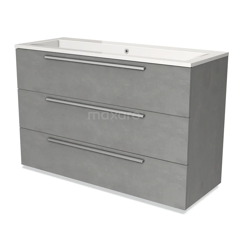Modulo Bathroom furniture with sink | 120 cm Light grey concrete Flat front Mineral marble 3 drawers