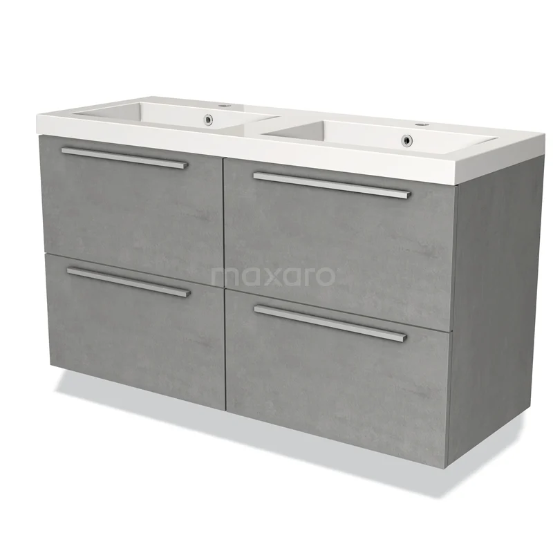 Modulo Bathroom furniture with sink | 120 cm Light grey concrete Flat front Mineral marble 4 drawers