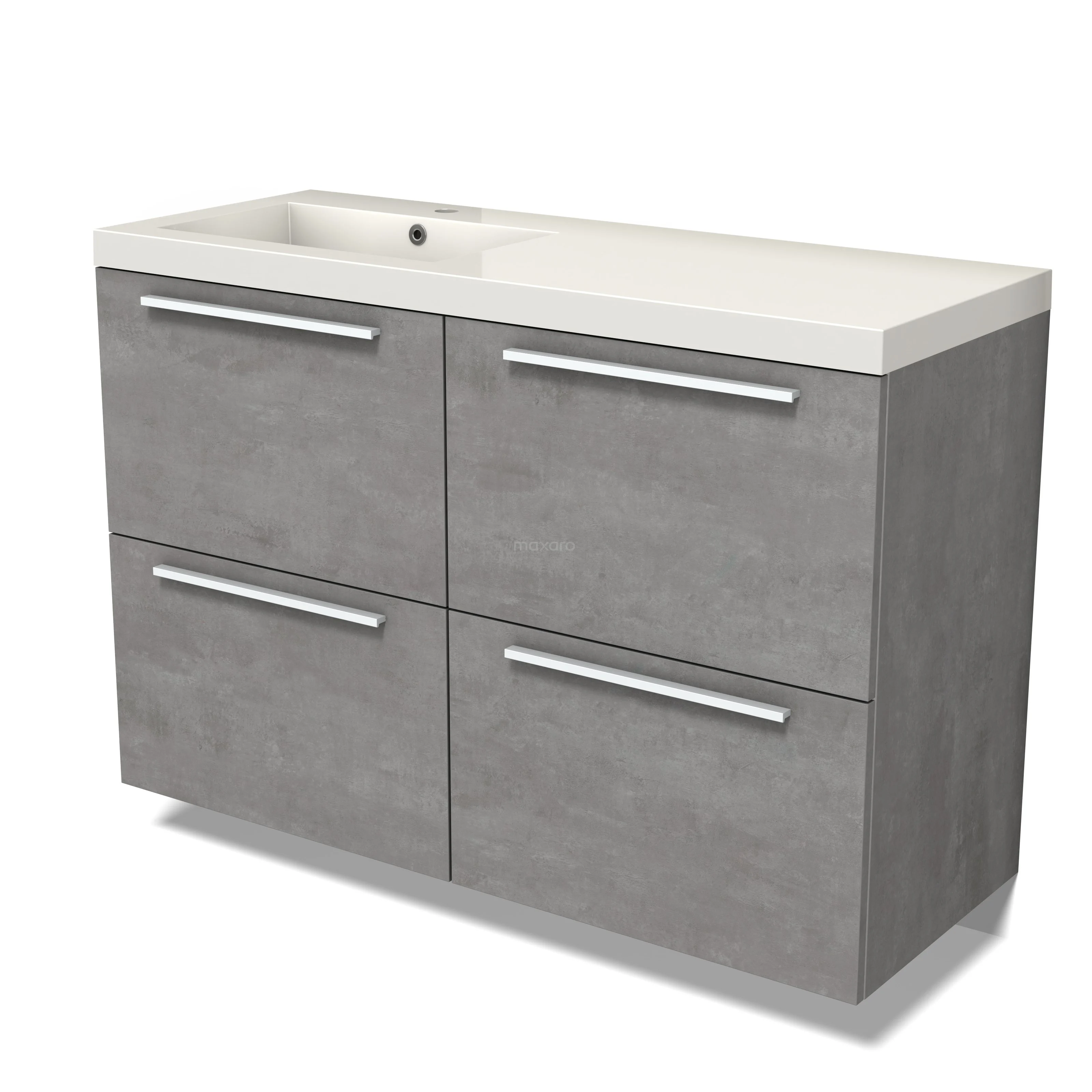 Modulo Bathroom furniture with sink | 120 cm Light grey concrete Flat front Mineral marble 4 high drawers