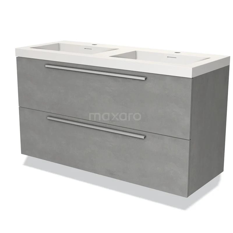 Modulo Bathroom furniture with sink | 120 cm Light grey concrete Flat front Solid surface 2 Stacked drawers