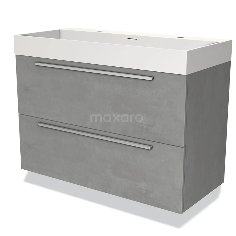 Stylish design The stylish design makes this bathroom unit the eye-catcher of your bathroom. The base cabinet has a flat front and has a finish in light grey concrete. This tough concrete look gives your bathroom interior an industrial look-and-feel. In addition, the flat front provides a timeless touch. You need to joint the handles yourself. These are available in different colours and shapes.