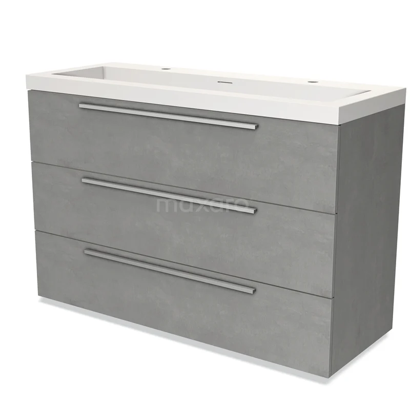 Modulo Bathroom furniture with sink | 120 cm Light grey concrete Flat front Solid surface 3 drawers