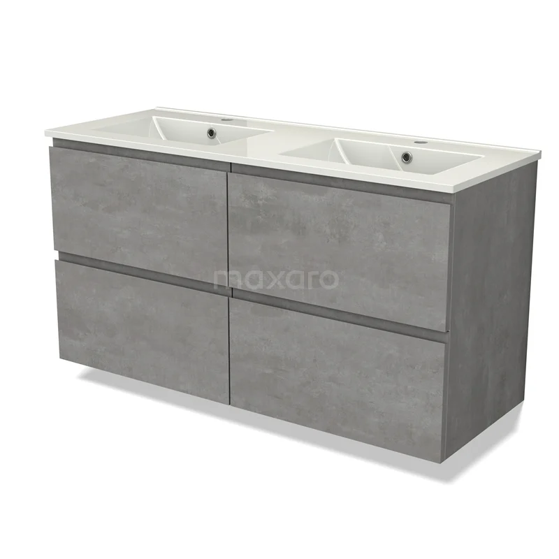 Modulo Bathroom furniture with sink | 120 cm Light grey concrete Handle-less front Ceramic 4 drawers