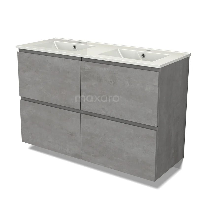 Modulo Bathroom furniture with sink | 120 cm Light grey concrete Handle-less front Ceramic 4 high drawers
