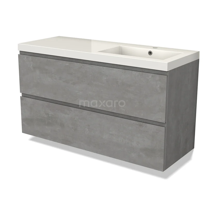 Modulo Bathroom furniture with sink | 120 cm Light grey concrete Handle-less front Mineral marble 2 Stacked drawers