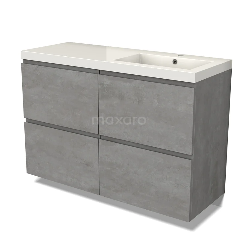 Modulo Bathroom furniture with sink | 120 cm Light grey concrete Handle-less front Mineral marble 4 high drawers