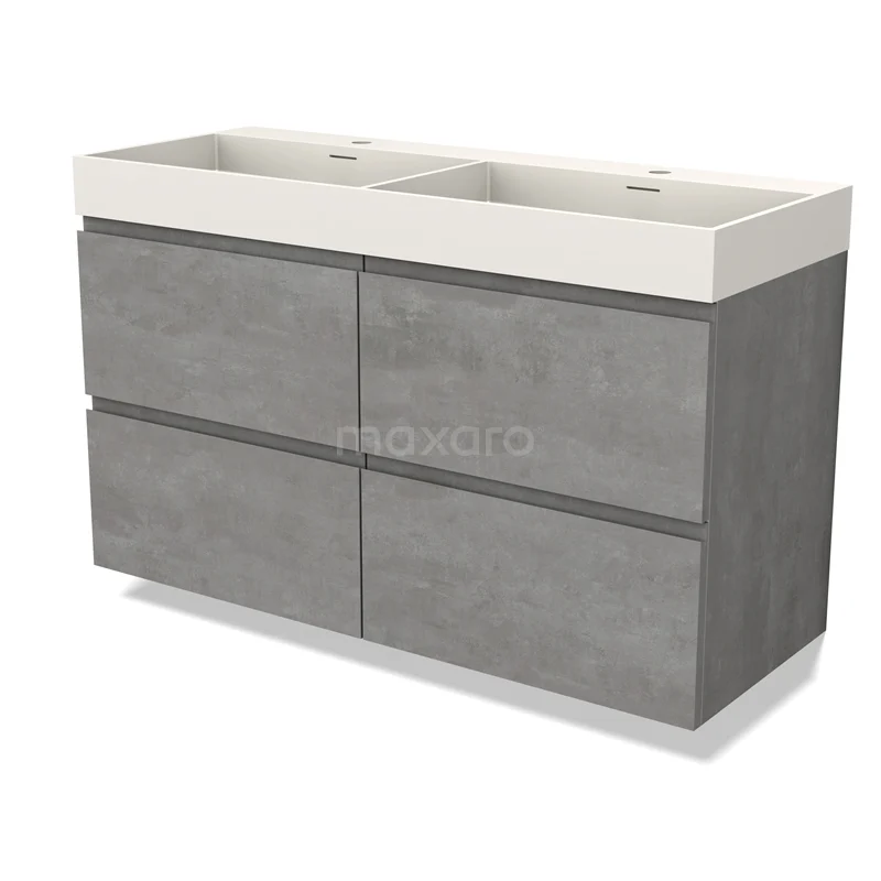 Modulo Bathroom furniture with sink | 120 cm Light grey concrete Handle-less front Solid surface 4 drawers