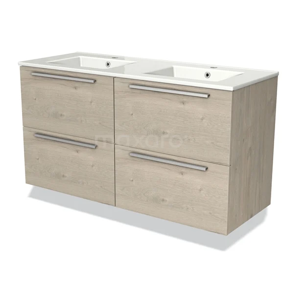 Modulo Bathroom furniture with sink | 120 cm Light grey oak Flat front Ceramic 4 drawers