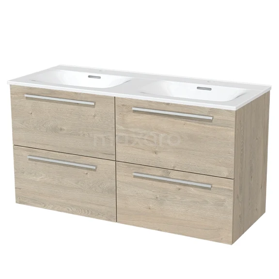 Modulo Bathroom furniture with sink | 120 cm Light grey oak Flat front Ceramic 4 drawers