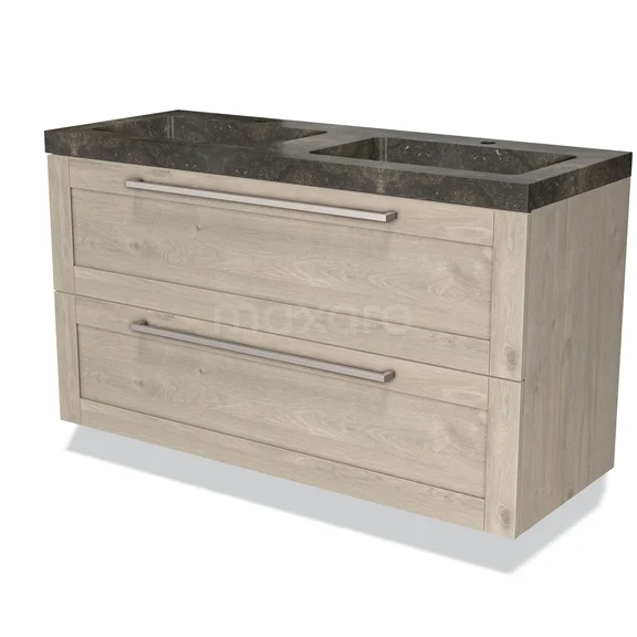 Modulo Bathroom furniture with sink | 120 cm Light grey oak Frame front Natural stone 2 Stacked drawers