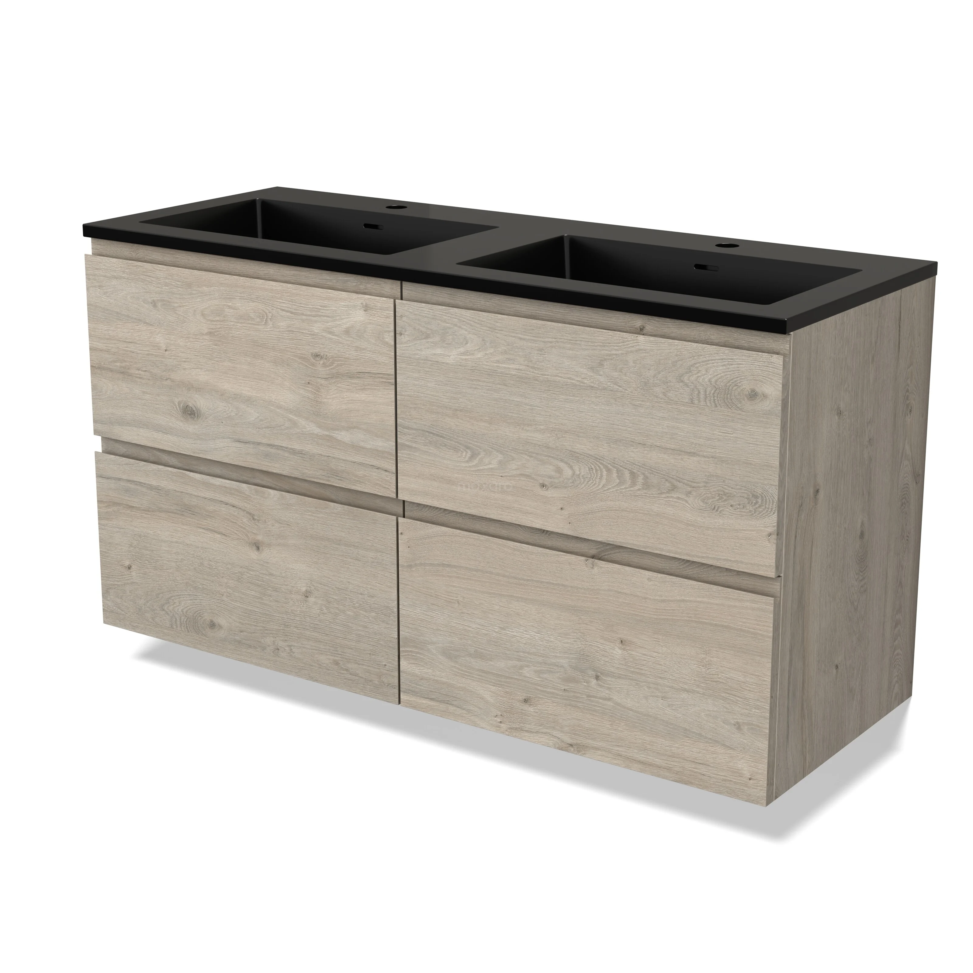 Modulo Bathroom furniture with sink | 120 cm Light grey oak Handle-less front Quartz 4 drawers