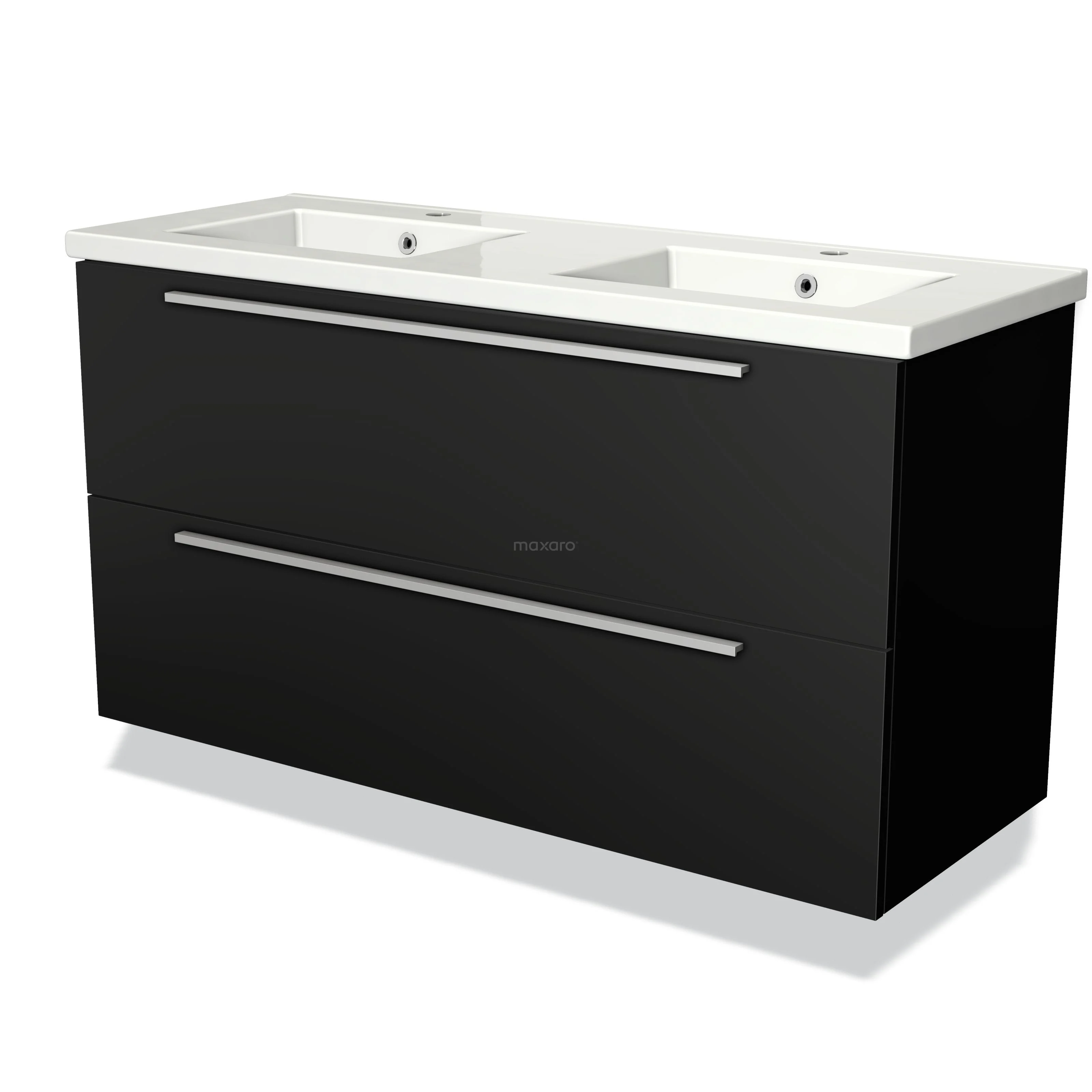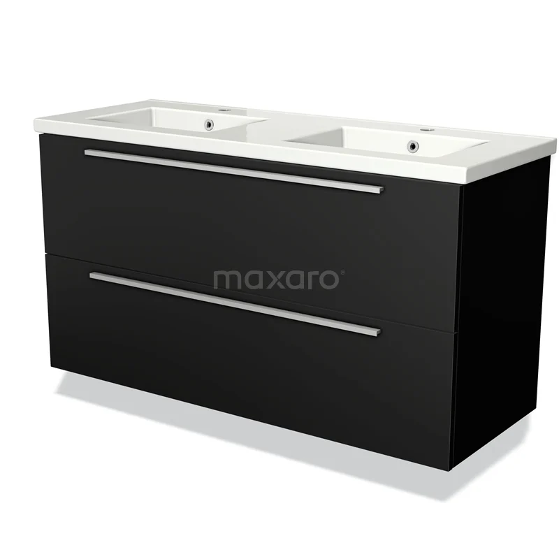 Modulo Bathroom furniture with sink | 120 cm Matte black Flat front Ceramic 2 Stacked drawers