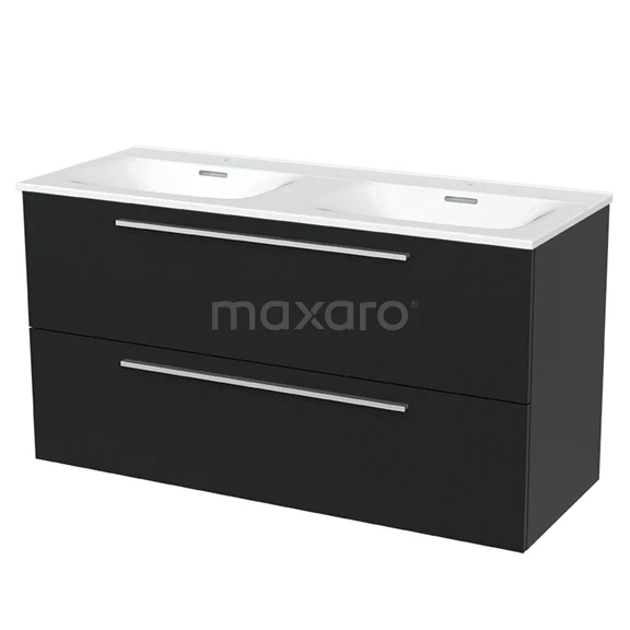 Modulo Bathroom furniture with sink | 120 cm Matte black Flat front Ceramic 2 Stacked drawers
