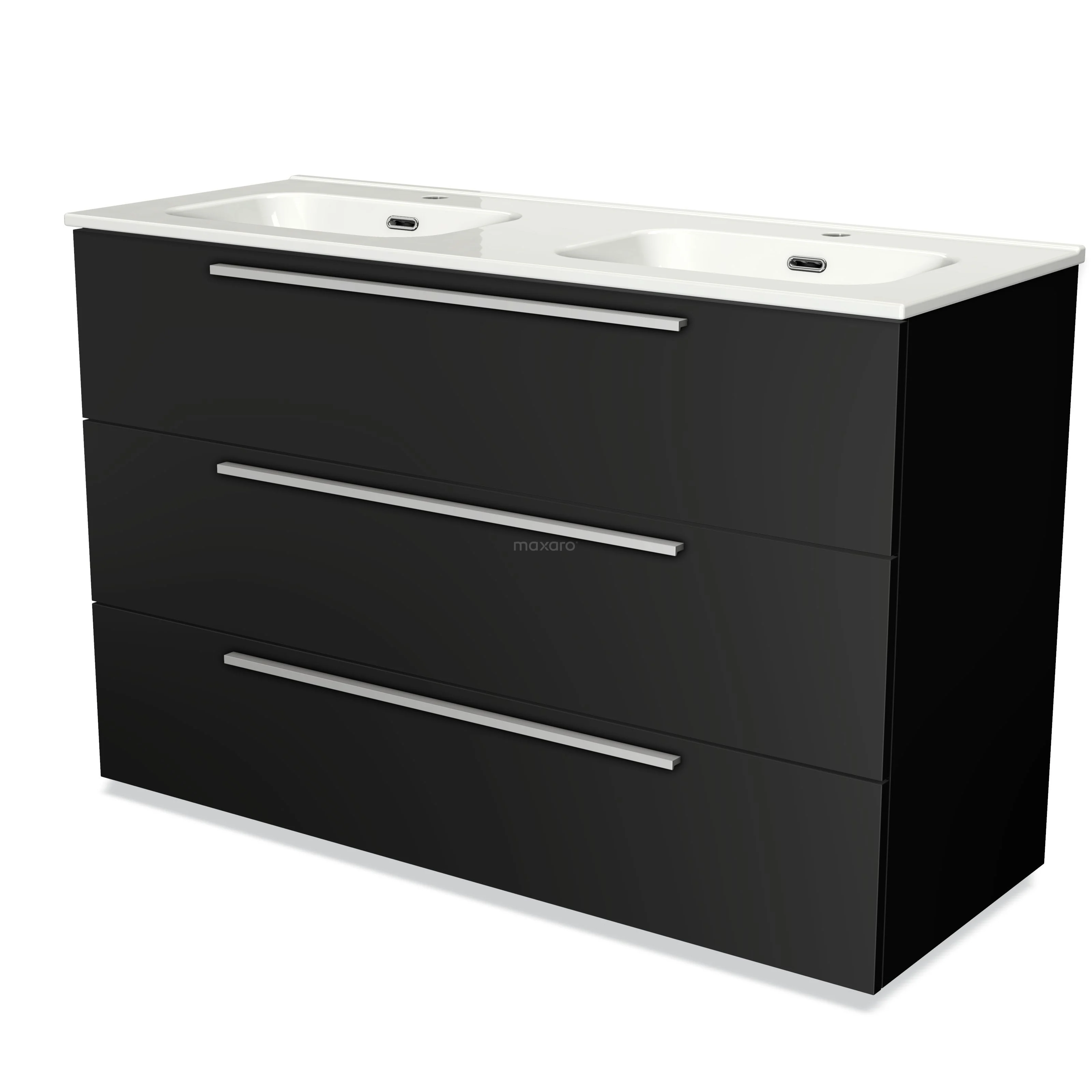 Modulo Bathroom furniture with sink | 120 cm Matte black Flat front Ceramic 3 drawers