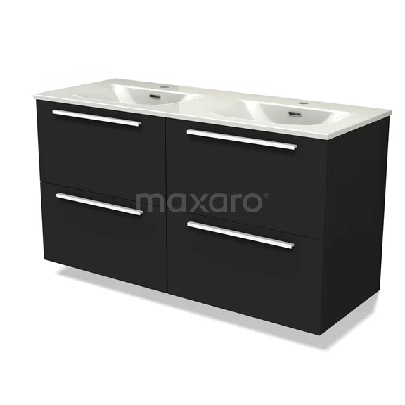Modulo Bathroom furniture with sink | 120 cm Matte black Flat front Ceramic 4 drawers