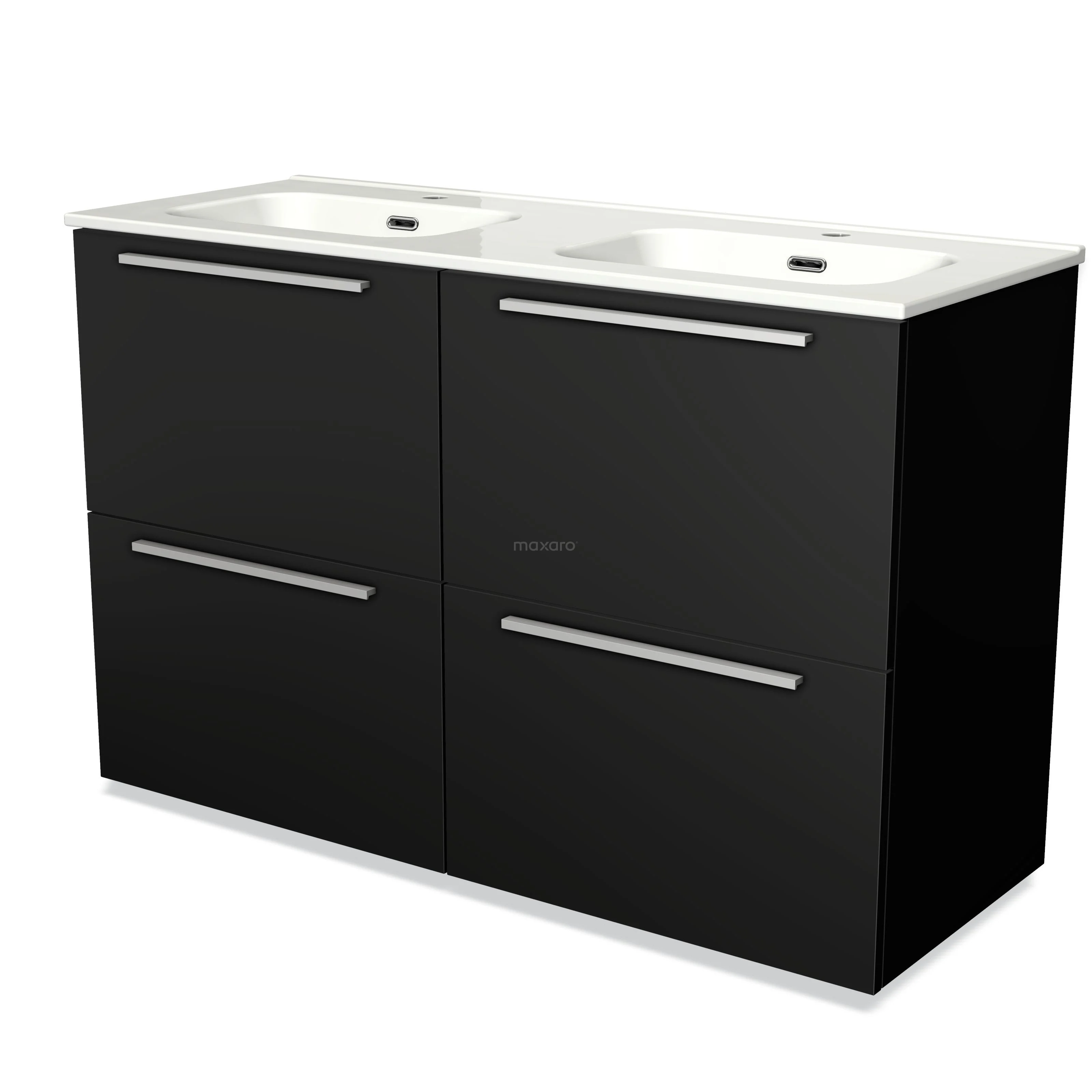 Modulo Bathroom furniture with sink | 120 cm Matte black Flat front Ceramic 4 high drawers