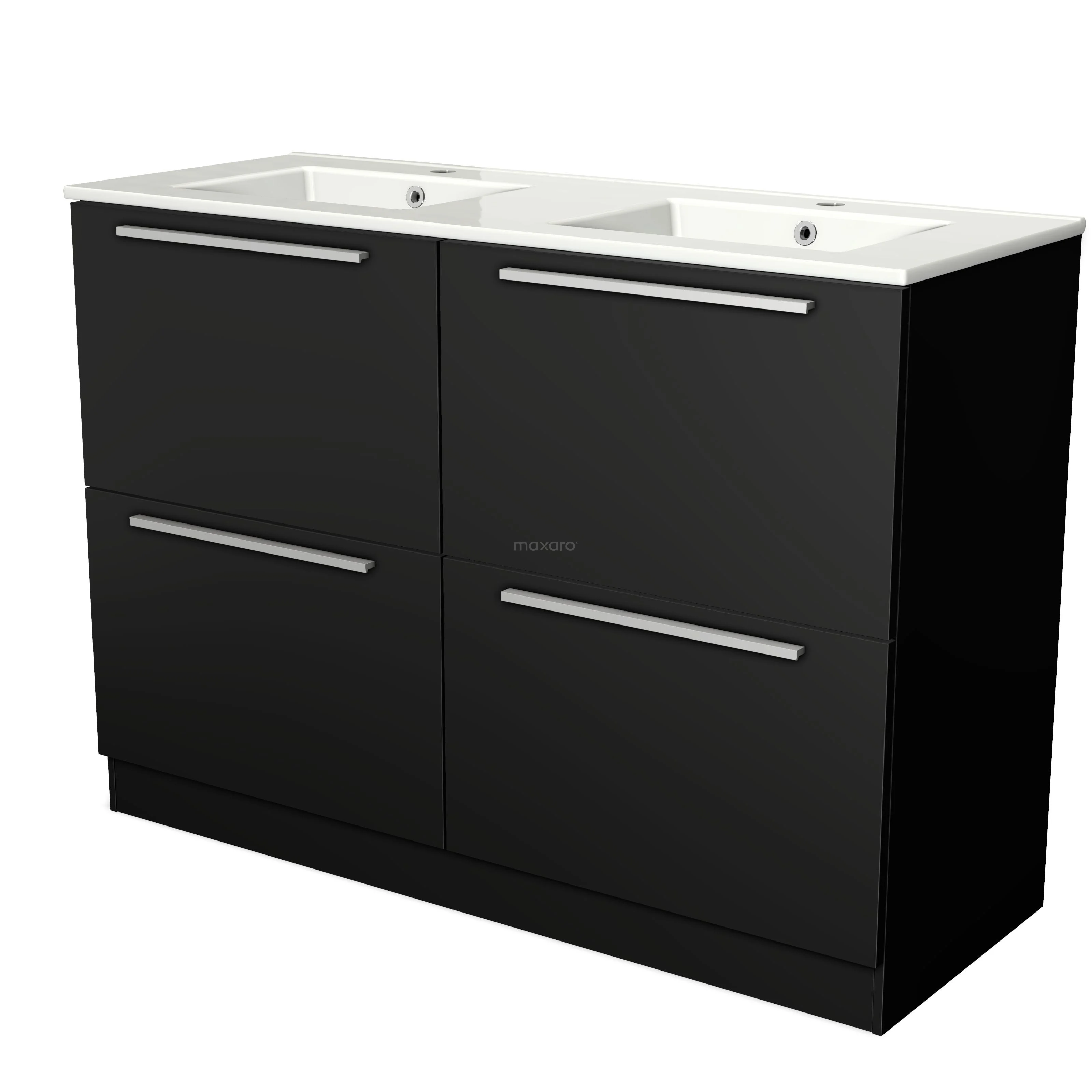 Modulo Bathroom furniture with sink | 120 cm Matte black Flat front Ceramic 4 standing high drawers