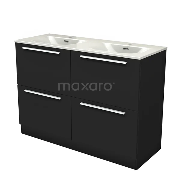 Modulo Bathroom furniture with sink | 120 cm Matte black Flat front Ceramic 4 standing high drawers