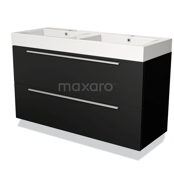 Modulo Bathroom furniture with sink | 120 cm Matte black Flat front Mineral marble 2 Stacked drawers