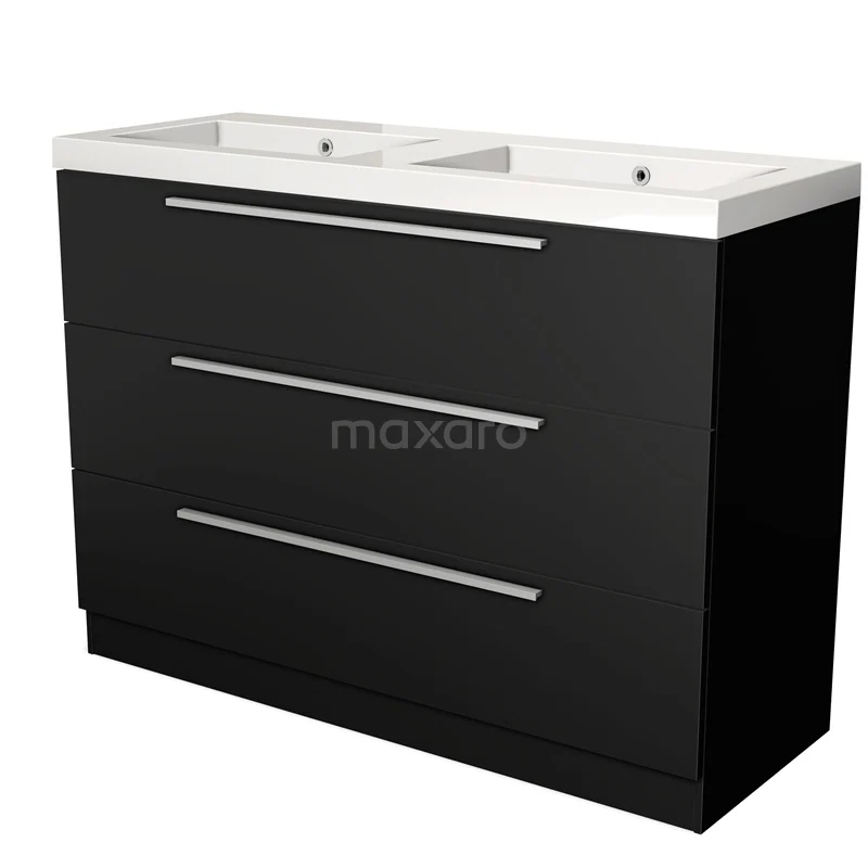 Modulo Bathroom furniture with sink | 120 cm Matte black Flat front Mineral marble 3 standing drawers