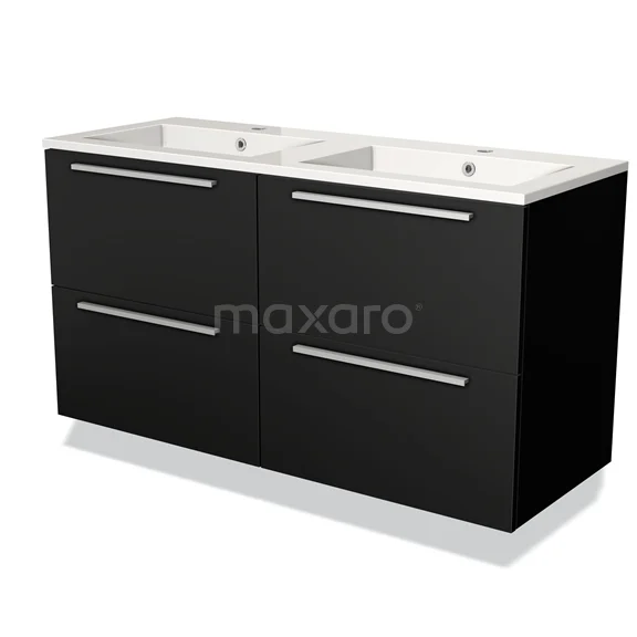 Modulo Bathroom furniture with sink | 120 cm Matte black Flat front Mineral marble 4 drawers
