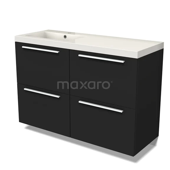 Modulo Bathroom furniture with sink | 120 cm Matte black Flat front Mineral marble 4 high drawers