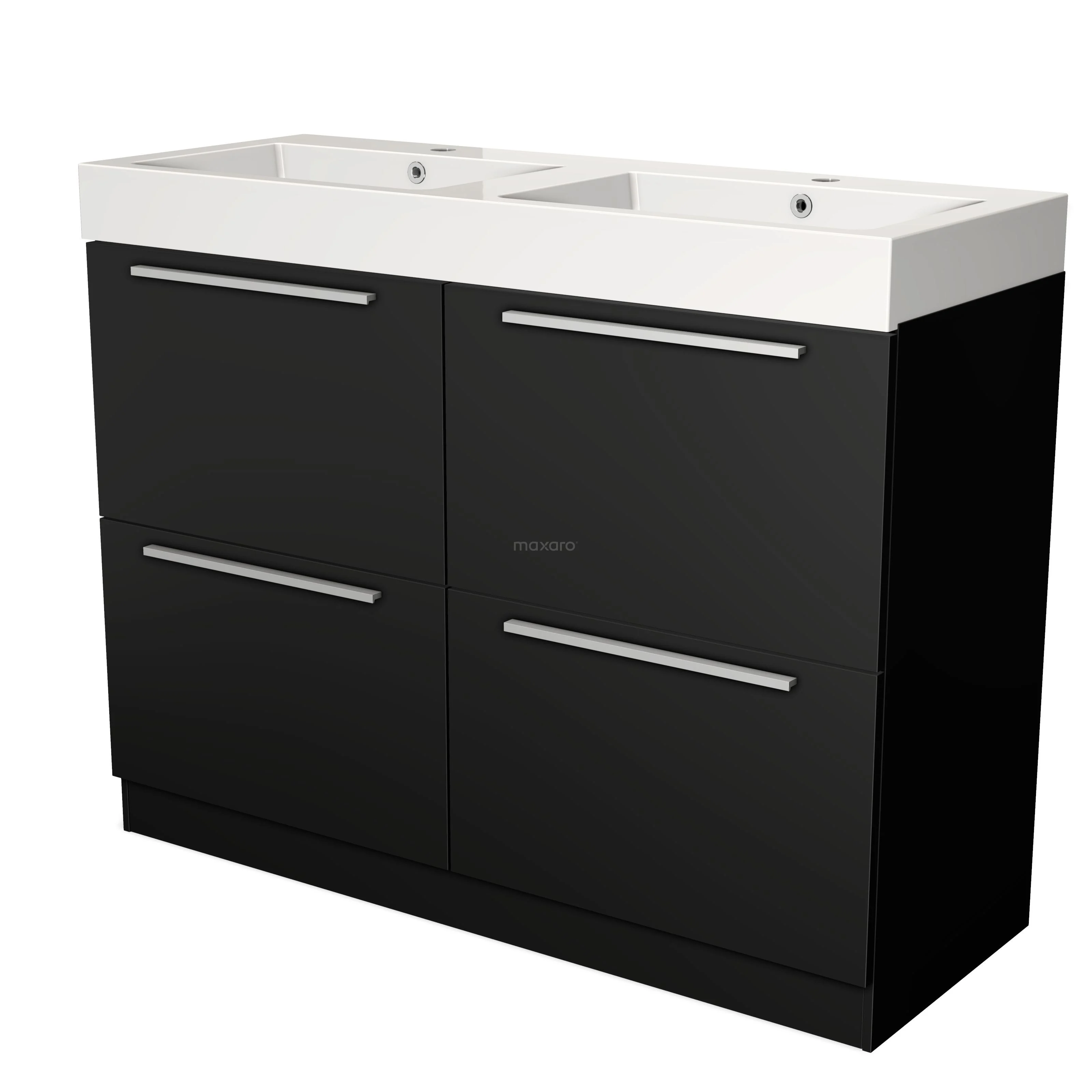 Bathroom unit complete A beautiful basin tap should not be missing from the bathroom unit. At Maxaro, you will discover taps in stainless steel, chrome, copper, gold, black metal and black chrome, among others. So you will always find a model to match the unit and your bathroom. For even more storage space and to complete the room, choose a matching bathroom cabinet.