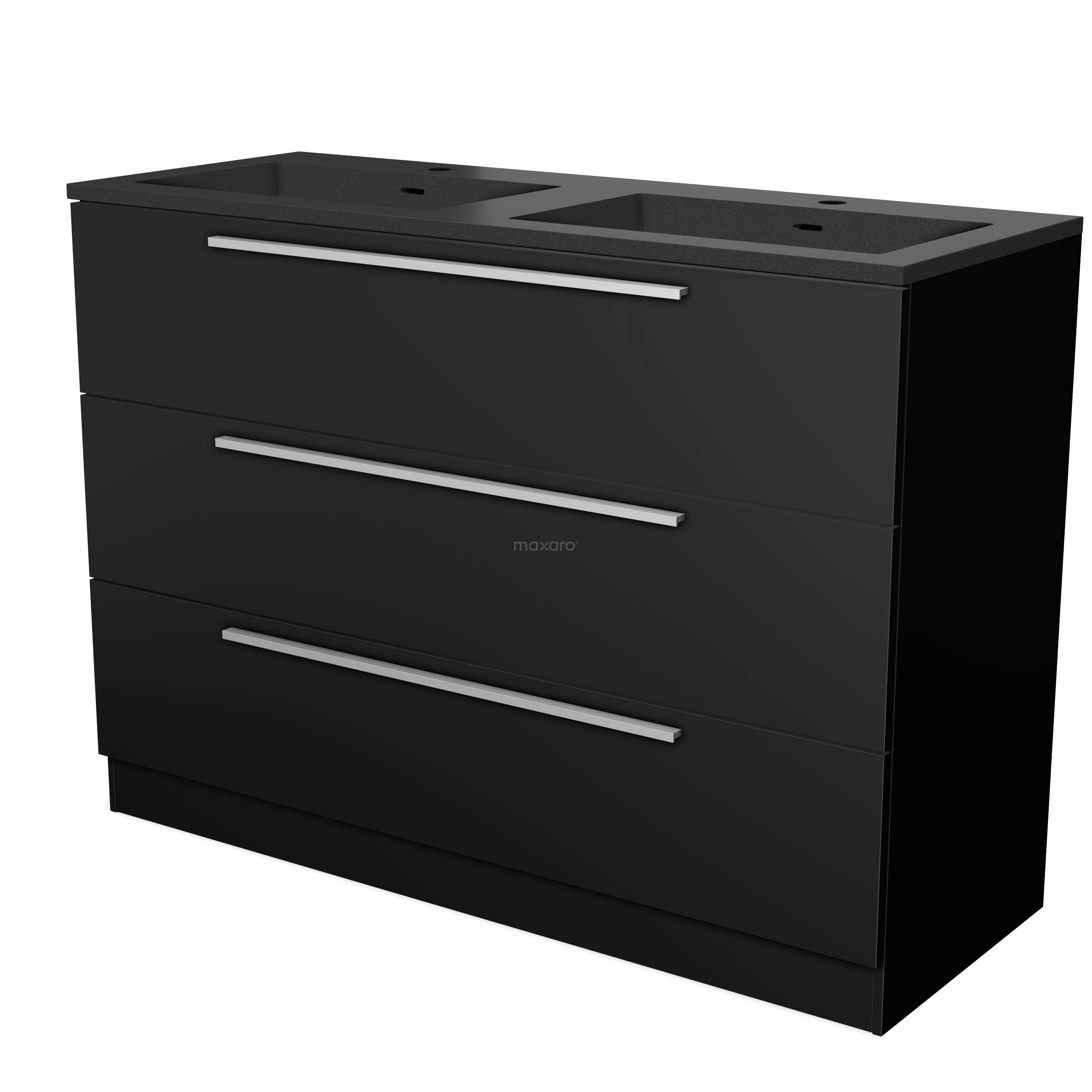 Modulo Bathroom furniture with sink | 120 cm Matte black Flat front Quartz 3 standing drawers