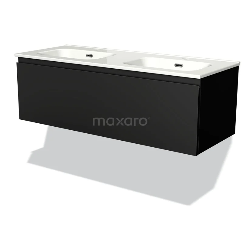 Modulo Bathroom furniture with sink | 120 cm Matte black Handle-less front Ceramic 1 drawer