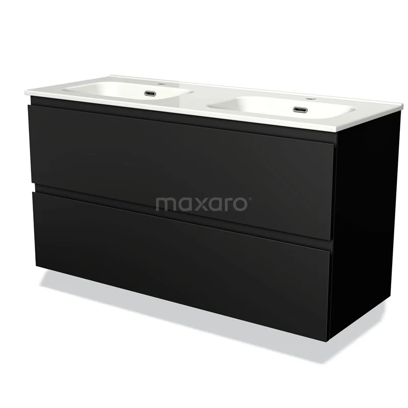 Modulo Bathroom furniture with sink | 120 cm Matte black Handle-less front Ceramic 2 Stacked drawers