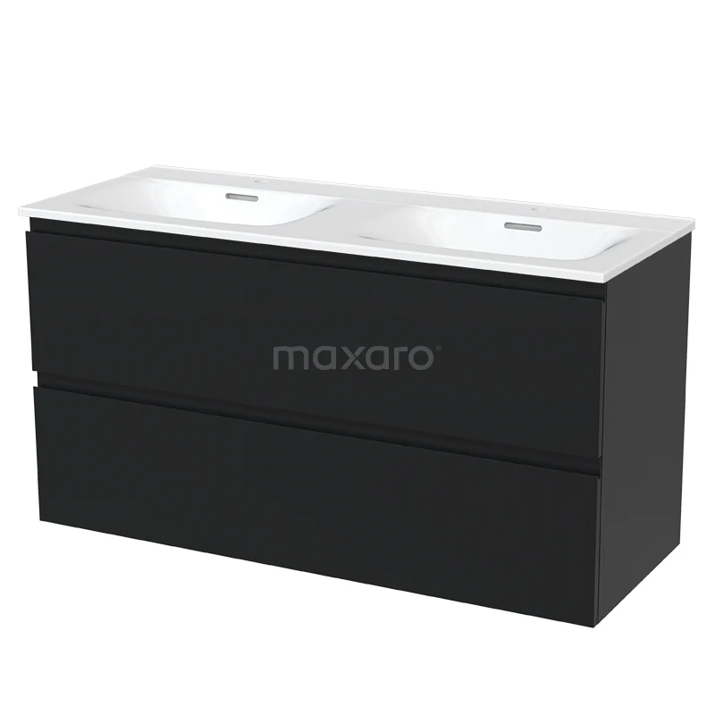 Modulo Bathroom furniture with sink | 120 cm Matte black Handle-less front Ceramic 2 Stacked drawers