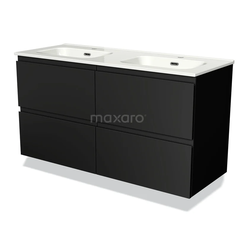 Modulo Bathroom furniture with sink | 120 cm Matte black Handle-less front Ceramic 4 drawers